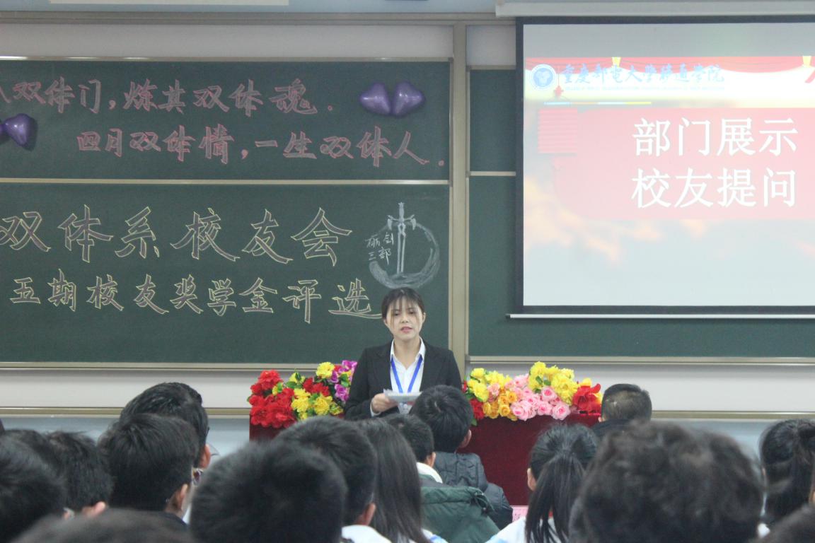 2017年12月29日14点,双体系第五期校友会奖学金评选活动如期在砺剑三部举行。莅临本次活动的嘉宾有重庆邮电大学移通学院校友会副会长、秘书长、院长助理周伟老师,校友会副秘书长、理事、双体系主任陈仲华老师,双体系校友会副会长郭淼,双体校友会理事霍佳璐、江知航及双体校友会代表,双体系各职场、技术老师。