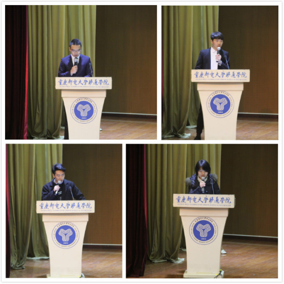 在颁发奖项的过程中,获奖代表裴子豪、传笋、杨凡对自己的创业项目进行了展示并对其创业经历进行分享,三位同学在分享的同时也感谢学校给予大学生创新创业实践的扶持与帮助。