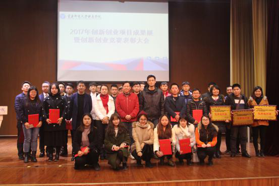 为全面展示2017年我校大学生创新创业教育成果,进一步营造我校创新创业氛围,促进创新创业交流,表彰创新创业典型,培养和提高学生的创新创业意识与能力。2017年创新创业项目成果展暨创新创业竞赛表彰大会于12月28日下午16:00在下里巴人剧场隆重举行。院长张德民教授、副院长王征、院长助理周伟出席本次大会,创业学院副院长陈仲华,各院系学生办公室主任及就业创业工作领导小组成员,辅导员及近300名学生代表参加了本次大会。
