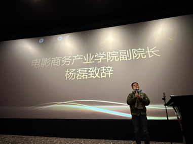 典礼接近尾声时,电影商务产业学院副院长杨磊上台致辞,鼓励学员们要继续努力,为电影产业的繁荣做出更大的贡献。希望每一位学员,不仅能将在电影商务产业学院所学的知识、所积累的实践经验延续到后续的学习、工作当中去,亦能用良好的电影产业管理基础知识、现代经营管理理念和大众文化传播能力,展现出电商人无限的激情和勇气,成为掌握电影产业、信息技术及商业管理的复合型经营管理人才骨干和“尖兵”。