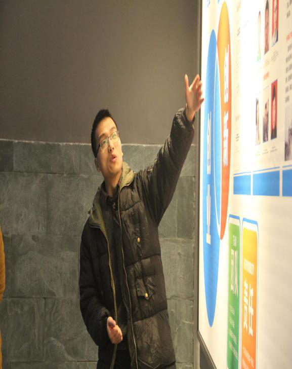 首先,在基地大门及大厅处向各位辅导员老师介绍大学生创新创业孵化基地名称的由来,并着重介绍了重庆市人民政府、重庆市科委、重庆市教委、合川区委组织部等上级单位对基地的命名,接着向各位辅导员老师展示了基地一楼关于创业学院、大学生创新创业孵化基地简介版块,以及在各级领导关怀下所取得的成果、举办的创新创业活动、获得的创新创业大赛奖励,并重点阐述了荣誉墙上各奖项的由来。