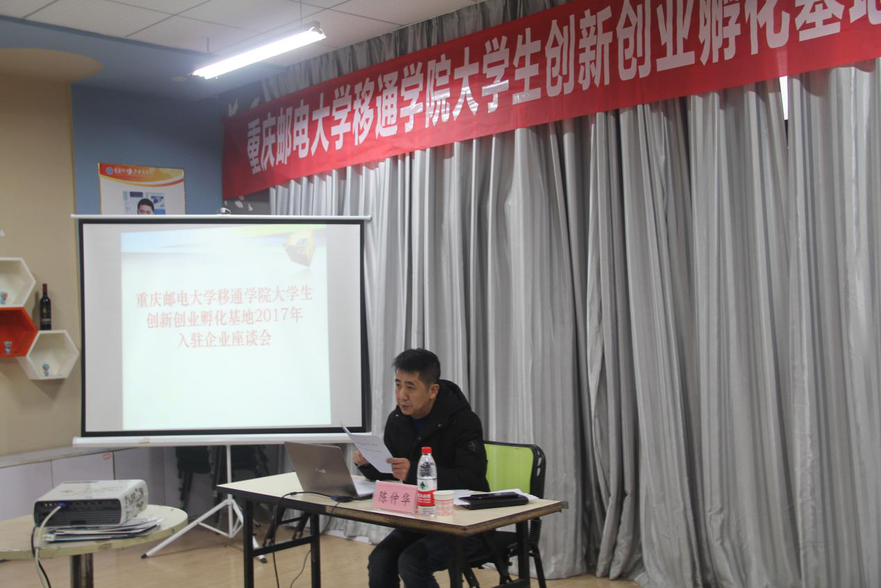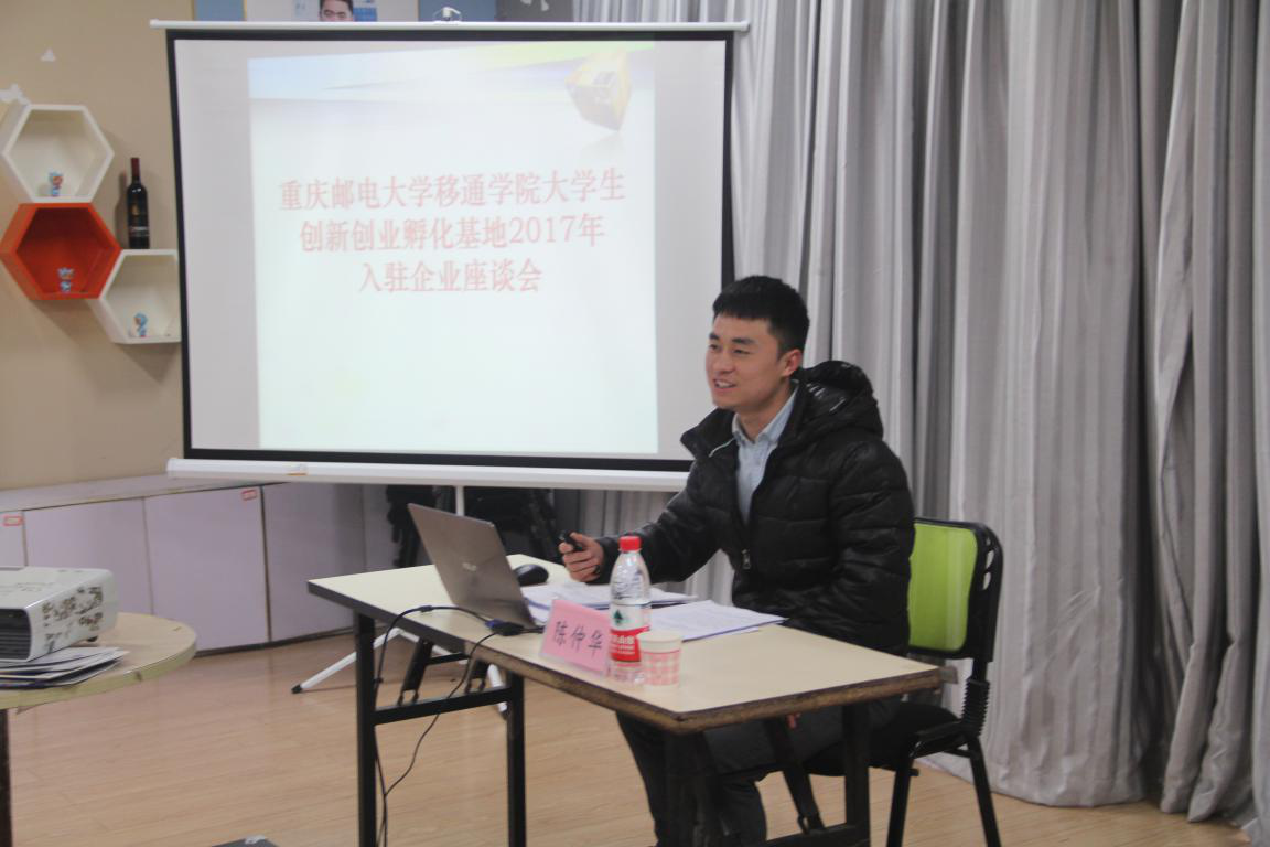 为更好的对入驻我校大学生创新创业孵化基地的企业提供服务,完善基地的安全管理,增强入驻企业的获得感、幸福感、安全感。创业学院于2017年12月29日下午15:00,在五教二楼创业服务大厅举办了重庆邮电大学移通学院大学生创新创业孵化基地2017年入驻企业座谈会。入驻我校创新创业孵化基地的各企业负责人及企业代表参加了此次会议。我校就业创业指导与服务中心主任、创业学院副院长陈仲华老师以及就业创业指导与服务中心主任助理杨德龙老师、创业学院秦友老师出席了此次会议。