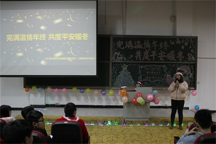 酷暑中的校园,因为一场雨,浇灭了炽热,一阵莞尔之风缠绵,便入了冬。热情高涨的学子们,因为数几日月,沉淀了浮躁,那阵风没了晴,抹了寒,瑟瑟入人骨中。都说平安夜的雪会格外温柔,虽说合川还未落雪,但有一个地方已经忍不住温热可爱的学子。2017年12月24日晚上7:00,计算机科学系2017级数字媒体技术专业、计算机科学与技术专业,在辅导员王焱老师的带领下一同度过了一场不一样的年级会。更有幸的是学生科王琴老师以及三位学生班导师也都来到了我们的平安之夜。