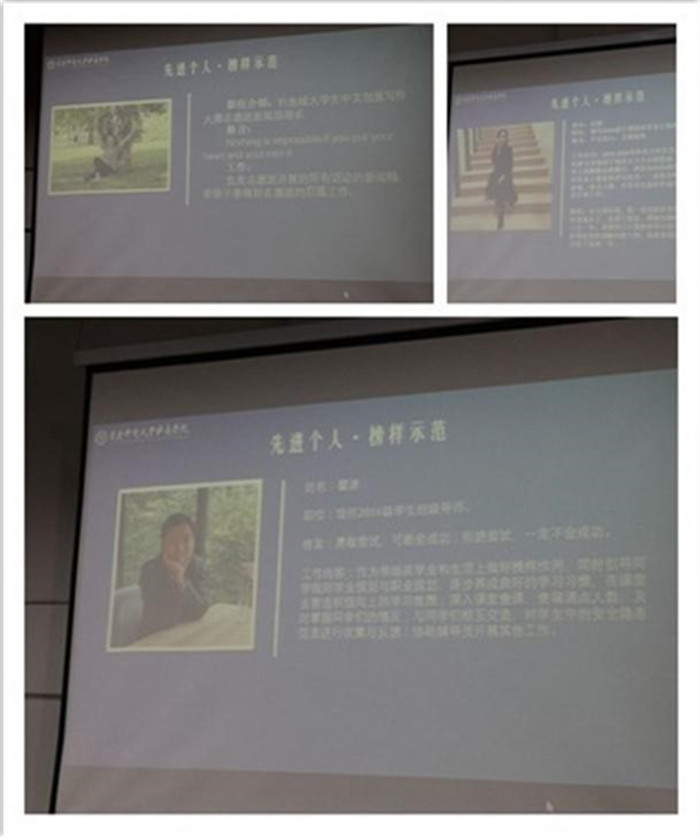 为了更好的总结沉淀本学期工作顺利开启下一学期的工作。获得奖学金、优秀学生干部、三好学生等荣誉的先进个人代表进行了自己的经验分享。