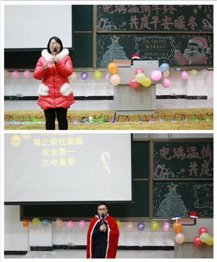 针对日常工作,阙老师由心赞扬各位班委同学,能够在百忙之中把班级打理得井井有条,出色地完成老师交代的任务,希望大家能在寒假好好休息,养精蓄锐。而十二月是二零一七年的最后一月,平安夜、圣诞节、跨年夜、元旦节,接憧而来。在同学们对节日的期盼中,打算在节日里疯狂中。背后是阙老师深深的担忧,担心同学们外出安全、聚餐酗酒……阙老师对同学们唯一的要求就是在十二月二十四日晚上一定要在十一点之前返回宿舍,外出活动一定要以自己的安全第一。俗话说“每一个成功的男人背后都有一位伟大的女人”。同学们说“每一个优秀学子的背后都有一位伟大的阙小梅老师”。