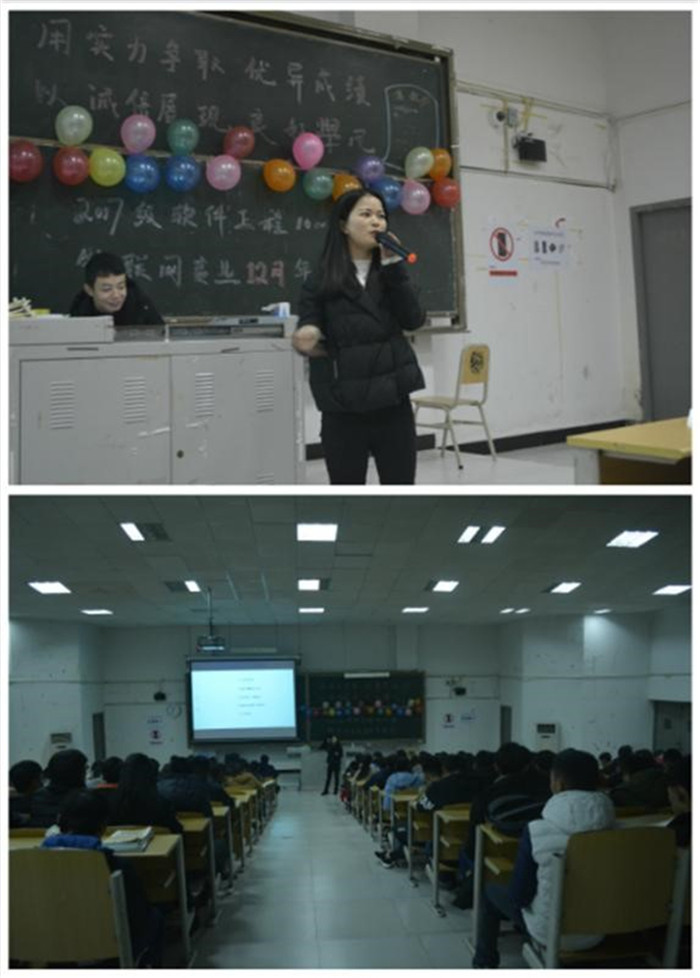 十二月,一年的最末一个月,忙忙碌碌不知不觉又过了一年。十二月,寒冷的冬季,收获的季节;院系活动,部门活动接近尾声;十二月,同样也暗示着本学期也到了要划上完满句号的时候了。12月21日12时整,计算机科学系2015级2017-2018学年十二月份年级会在3203教室如期举行,此次年级会由辅导员任瑞娟老师为我们简要讲解如何打造自己的职场名片才能让人眼前一亮,以及介绍支部榜样,向各支部的优秀榜样看齐。