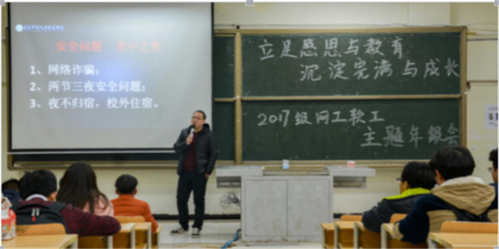 生活中最重要的事情是什么?是安全。安全是生命之本。安全问题也是学校一直以来特别关注的大问题。马喆老师在此次年级会上特别的重点强调大学生在校期间的安全问题,他告诉同学们要紧惕网络诈骗以及圣诞节与元旦节之间及时归寝和一些日常的安全问题。相信同学们通过马喆老师的讲解之后对安全问题的认识又提高了一个档次。在这之后创造一个平安而又良好的大学生活。