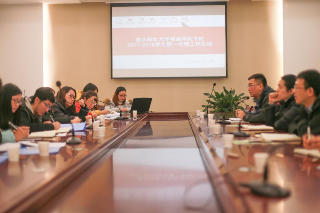 1月18日,书院2017-2018学年第一学期工作总结会在行政楼107正式召开。会议围绕着“各书院工作汇报”、“晋渝建设工作交流”、“总结发言”三个议程展开。副院长王征、团委书记李文豹、团委穆春江和书院部全体成员参与了此次会议。