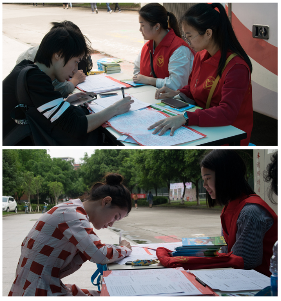 不管是晨光熹微还是夕阳西下,志愿者搭起帐篷,安好桌子,端坐在自己的位置上,等待着献血者的到来。看着志愿者指导献血的同学们填写资料,微妙的感觉从这里开始。志愿者说:“帮助献血的同学,给他们指导、讲解是他们的责任,因为我们是青年志愿者”。原来这种微妙的感觉是互助。