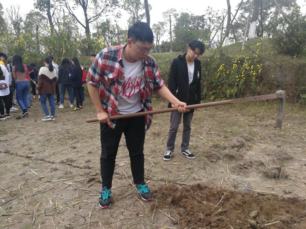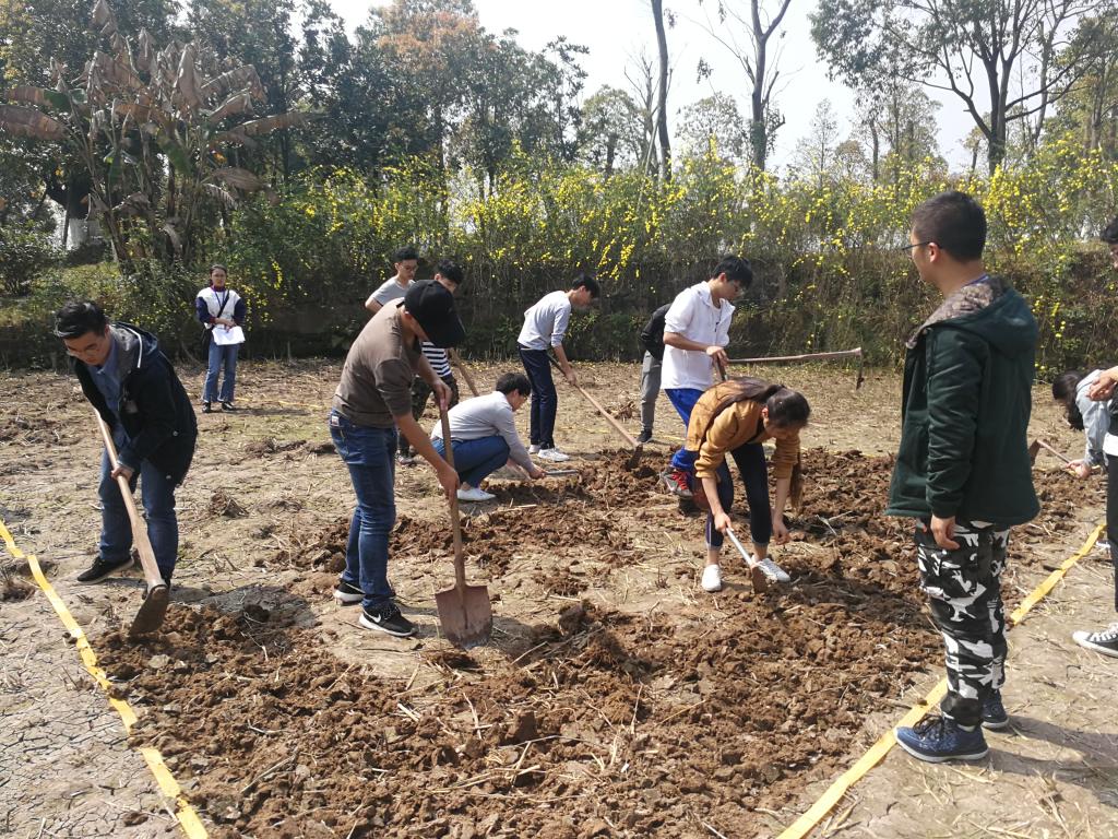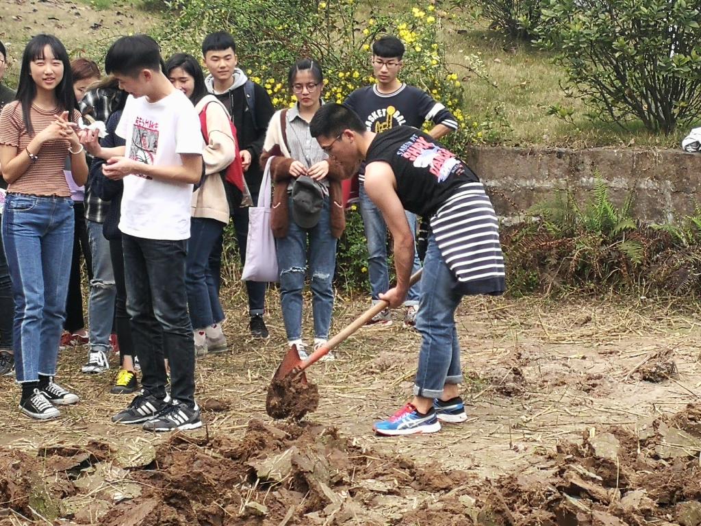 顶着炎炎烈日,完骨班的同学们在艺传果园挥舞着手中的锄头、铁锹,将自己脚下的那块土地慢慢地耕开。虽说正值一天里最炎热的时候,可完骨班的每位成员都没有退缩,满含热情地进行着自己的工作。