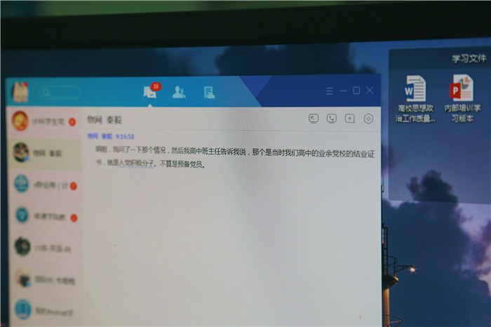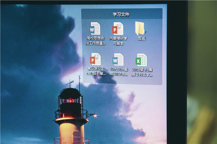 夜晚七点到来,即使已是春天,外面仍开始冒着一点凉气。学工办公室的灯依旧亮着,处理完白天的工作后,电脑桌面的右上角放着几样学习文件,这也是任导每天工作之余的自我学习内容。