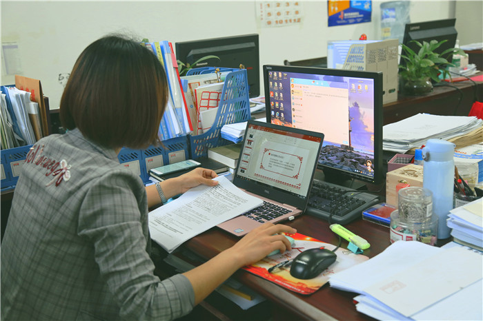 每天早上八点准时打开电脑,挂上QQ查看回复学生各种信息、短信、邮件,QQ无疑成为了任老师工作的重要工具,每天她的QQ消息的声音总是不断响起。时常也会接到学生家长的电话,与家长讨论学生有关事情。