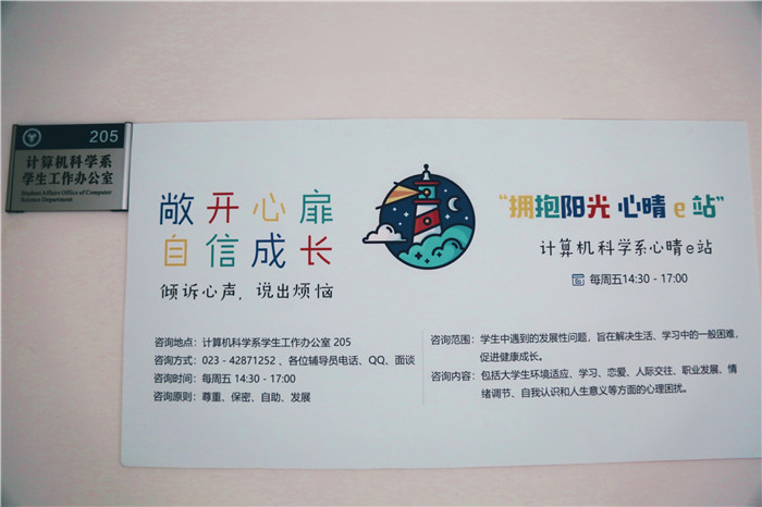 院系里特设心理咨询站,也是任老师时常都会去的地方,有时候一天会同2-3位学生谈心谈话,为他们答疑解惑。