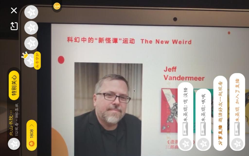 中英文双语配合,学生掌握了很多科幻词汇的表达。由北京华夏盛轩图书有限公司引进的2015年星云奖小说《湮灭》,是一部奇特的作品,看过的读者会发现,那是一部很难归类的书。陈捷老师用其改编的电影举例,小说中光怪陆离的惊悚世界,在线上再次呈现,一连串怪诞的秘密,既令人不寒而栗,又引人深思,内涵层次十分丰富,给人一种“诡异的神游”感受。不少同学表示:以前有看过这部电影,只觉得比较恐怖,今天听了陈老师的科普,才发现这类电影的诞生,是在新怪谭运动的效应下产生的,增长了很多科幻领域的见识。