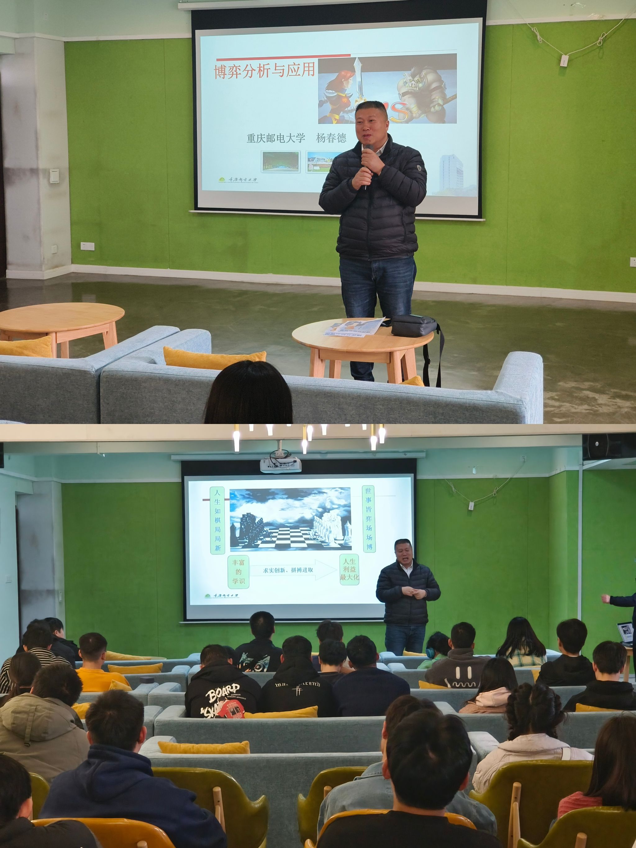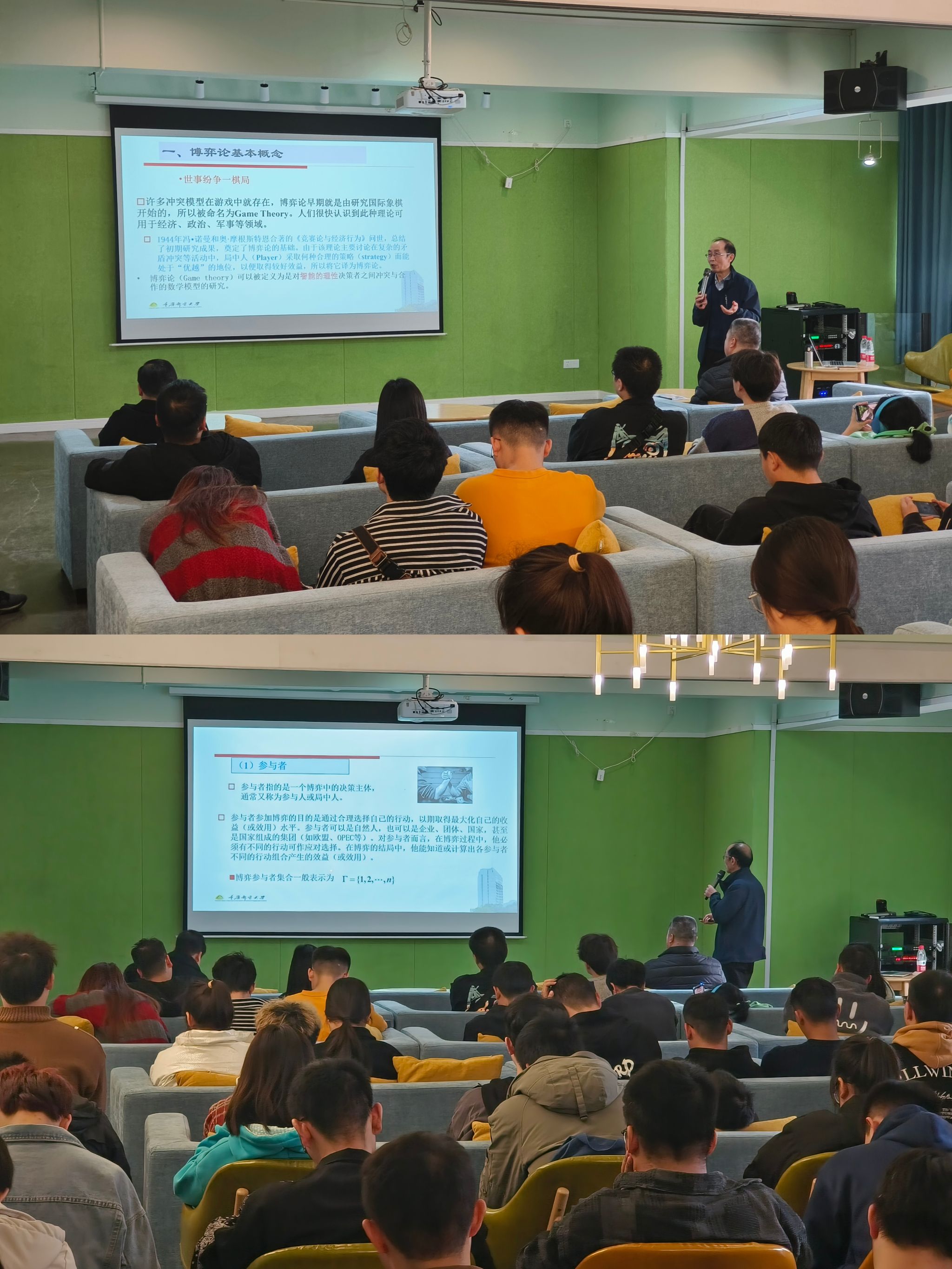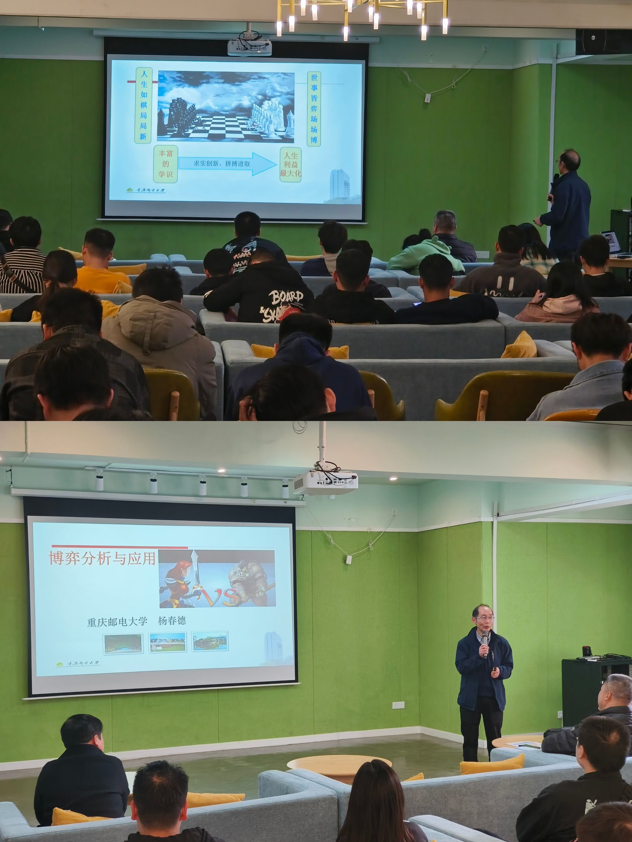 为进一步加强数字经济与信息管理学院的专业建设,提高学生专业能力。11月22日下午15:00在双栀书院多功能影音室如期展开了“数智汇”系列讲座第25期。本次受邀而来的主讲人是杨春德教授,三级教授,管理工程、计算机科学与技术和系统科学硕士生导师,他以“博弈论分析与应用”为主题进行了报告分享。出席本次讲座的嘉宾有潘显兵院长、科任老师代表,以及数字经济与信息管理学院专业学生。