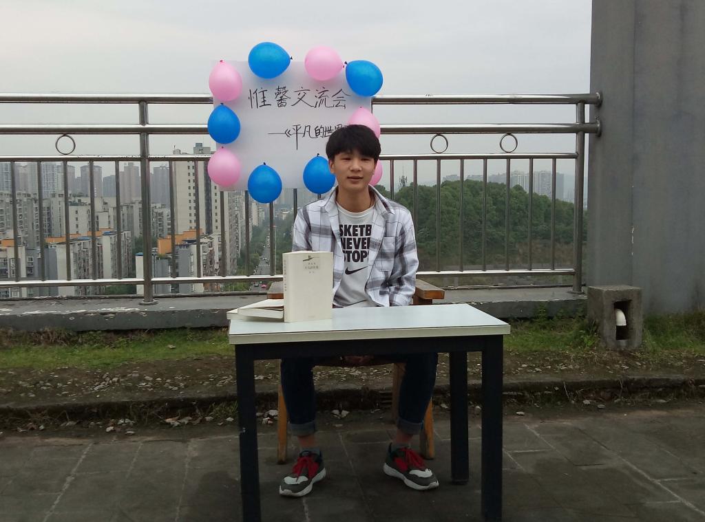 读书协会社长邓平用一首《成都》吉他弹唱点燃了这次“惟馨交流会”的浓浓书香氛围。接下来就是社员们对书籍《平凡的世界》做出的领悟分享,让我们一同走进那个艰苦而勇敢的时代。