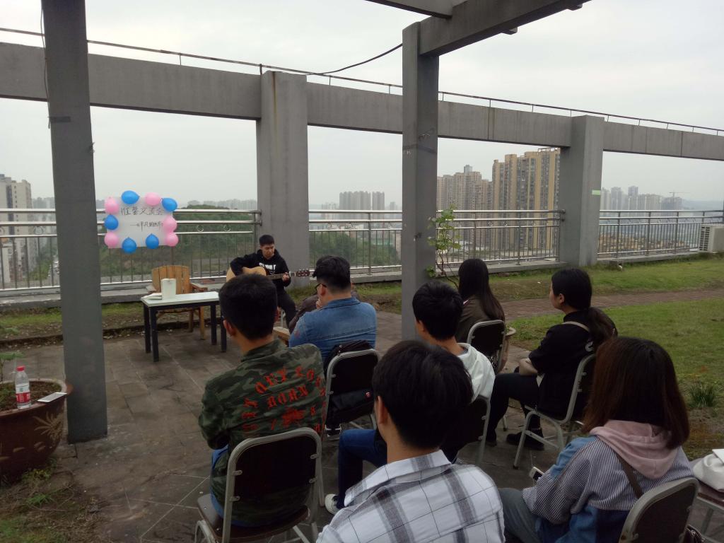 (社长邓平深情弹唱一曲《成都》为活动拉开序幕)