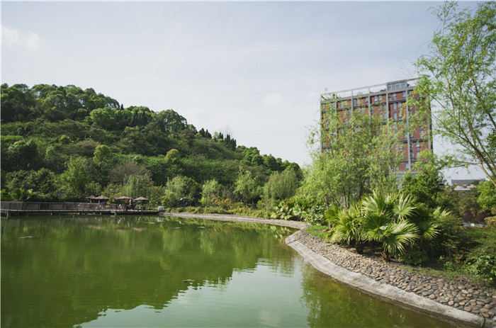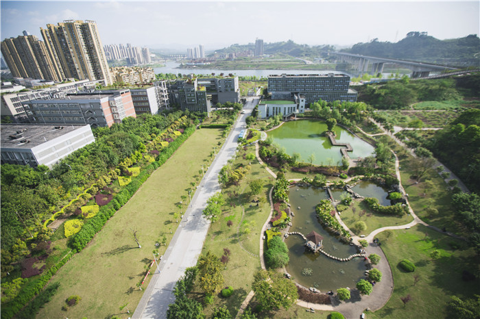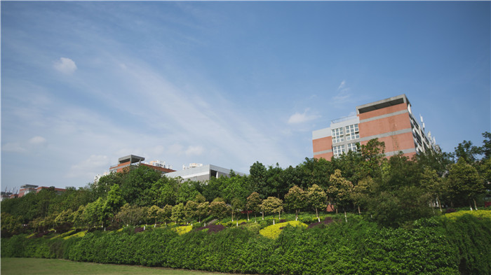 俯瞰校园,绿林丛中,蜿蜒一片红色学林建筑,熟悉而又亲切的身影此时别有一番风味。