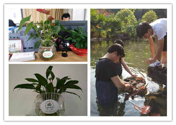 (图为花卉协会在我校行政公共区域摆放的绿植、在双子湖种植睡莲)