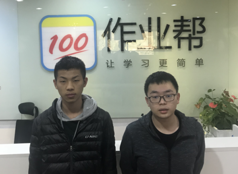 双体系学员杨祖豪(左一)、陈成(右一)在百度作业帮合影