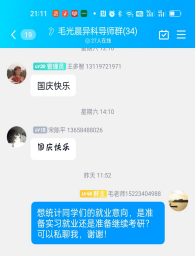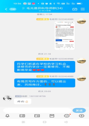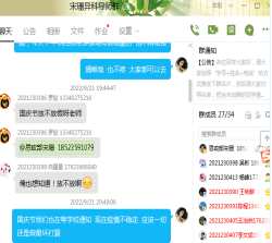 国庆临近,宋珊老师耐心的回答学生们关于国庆放假安排的疑问,并提醒学生们在疫情下要做好防护,保护好自己。对于学生对学分上的疑问宋珊老师跟进,对于修学分和考研相冲突的向星星同学宋珊老师耐心的说到应该要做好规划,在准备考研的同时也要修完各个版块的学分。