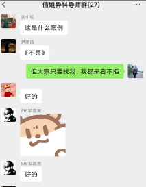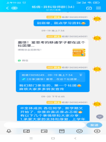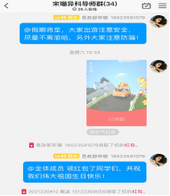 杨倩老师通过发红包的方式和学生们一起分享喜悦。小小红包,浓浓师生情,向学生推荐社团,做出了新学期的工作安排,和学生一对一交流,缓解就业压力,了解就业动向。开展线上大咖阅读活动,带领异科导师学生共同学习《腾讯传》,从心理学的角度了解大咖们具有的人格特质,帮助学生更好地了解自己,学会运用自己的性格优势寻求适合自己的职位。指导学生参加报名完满活动。刘婷和邹蕊男同学在生活中遇到了消极事件,短时间内无法自我调节,通过和他们线上的交流,帮助他们正确认识已发生的事情,并学会使用合理的方式缓解和释放自己的负面情绪。