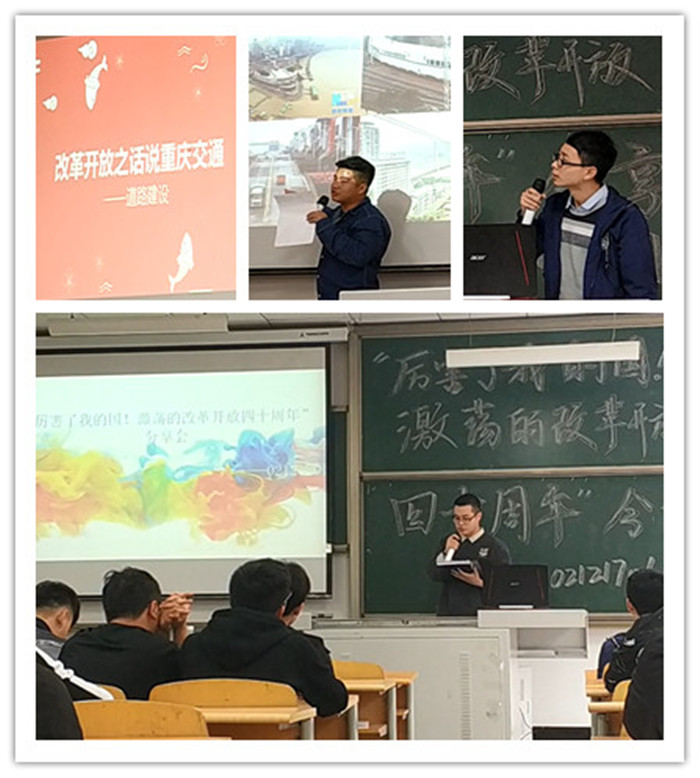 四十年,沧海巨变,神州大地迎来了巨大变迁,改革开放将第一缕春风送进了华夏儿女心中,改革开放四十年,迎来了中华的腾飞与发展,人民步入生活幸福,思想健康,建立和谐社会的中华道路,走在中国自信的道路上,青年学子体验改革开放带来的巨大变化与机遇,回顾征集与改革开放四十年相关的老照片、老物件以作为短视频拍摄线索,用身边的故事讲述改革开放40年的变化,02121701团支部以改革开放为背景,体验改革开放四十年的变化,特举办此次完满超级团支部活动,本次完满超级团支部活动收到了学校教师以及领导的帮助与支持,王征副院长通过信息鼓励了整个支部的同学努力实践体验完满,为中国梦的实现贡献自我的能量。
