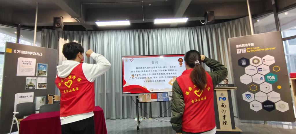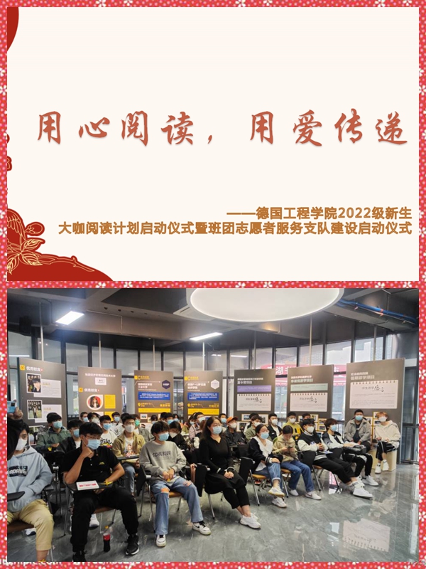 10月7日中午,德国工程学院团总支学生会秘书部携手德工青年志愿者协会,在南湖书院国际文化展厅联合开展了2022级新生大咖阅读计划启动仪式暨班团志愿者服务支队建设启动仪式,学院辅导员肖瑶老师、李倩老师、李嘉欣老师及2022级各班班级代表等出席参加活动。