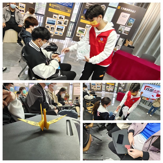 志愿板块指导老师李嘉欣老师带领志愿者们为同学们送上充满爱意的折纸手工,附上对同学们的青春寄语。李嘉欣老师谈到,希望同学们不忘感恩,愿心中温暖之处永存,尽己所能,传递温暖,即便一朵小小的浪花,也亦然能在滚滚洪流中奔腾呼啸。