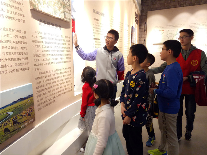 讲解员如数家珍地为小朋友讲解钓鱼城的故事。当走到二楼“大事记”板块时,小朋友们纷纷驻足停留,看着满墙的文字,他们心中充满疑惑。不过伴随着讲解员生动地解说,复杂的文字仿佛转化成一张张会动的图画呈现在他们眼前,让他们了解到公元1243年到公元1279年发生在合川的那些事,了解到合州军民坚苦抗战的36年,也让他们知晓了钓鱼城守将的忠君爱国之情和钓鱼城背后的伟大。