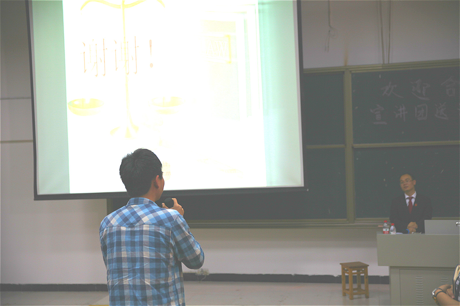合川区人民法院一直与我校律师协会保持良好的合作互动,律师协会的会员们经常到法院参加审判旁听,在校内进行普法宣讲活动,希望能够帮助在校大学生架起一座知法、懂法、守法的桥梁。此次活动受到了合川区法院的高度重视,他们派出了青年法官宣讲团:来自合川区法院机关党委办公室陈红馀副主任,合川法院刑庭审判员黄明,合川法院民二庭法官助理程杨。