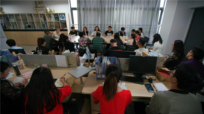 教学管理齐头并进,科研育人并肩前行,为进一步贯彻“紧抓教学质量、力推人才培养”的理念, 2018年4月18日下午16点,艺术传媒学院全体教师会议在艺术楼303室召开,会议由李轶天副院长主持,艺术传媒学院全体教职工及学工办教师悉数参与。为进一步深化学院教师对学校完满教育细节内容的深入了解,会议特别邀请了学工办主任李克伟老师,就艺术传媒学院在完满教育工作中的具体内容进行细化介绍与讨论。本次会议内容分为三大板块:教学总结及规划、有艺术传媒学院特色的完满教育工作讨论、学生就业汇报。
