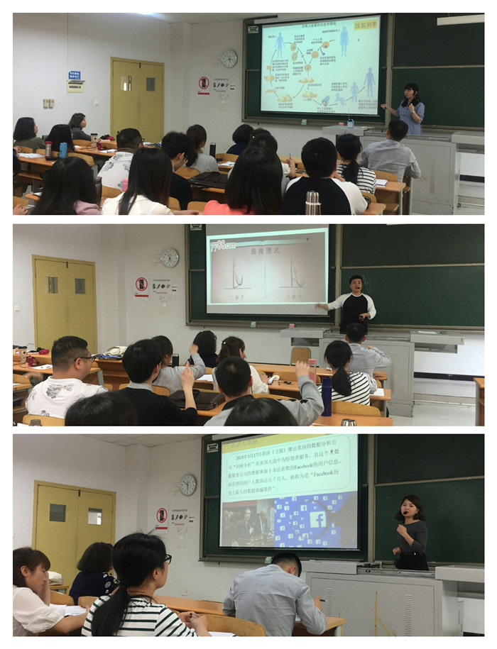 陈春彦老师绘声绘色,在简要回顾克隆技术概念的基础上,通过《克隆丈夫》视频并据此向学生提问,并对克隆人进行了伦理分析。武尧老师声情并茂,主要向大家讲解了音乐中的指挥艺术,他同大家展开良好的互动,课堂氛围活跃且不失魅力。黄延果老师逻辑严谨,从三个方面包括认识大数据、大数据的应用领域和大数据时代的机遇与挑战对信息技术与大数据进行了讲解。