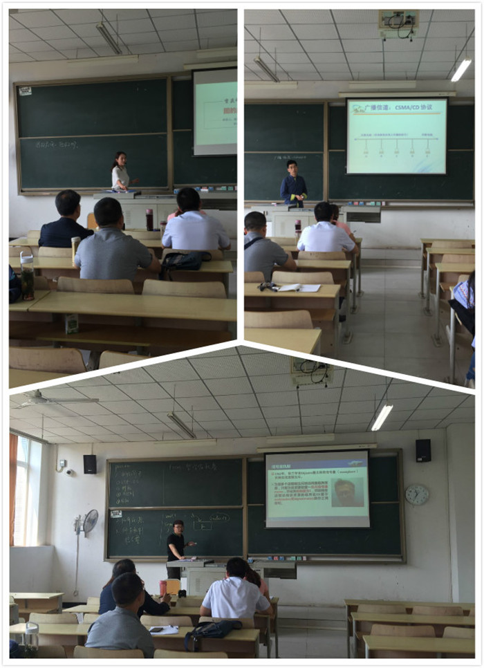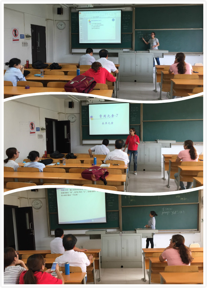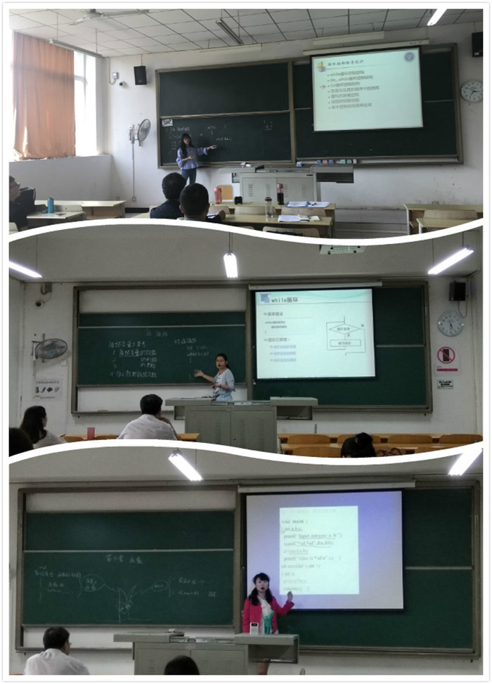 比赛现场,各专业老师同台竞技,各显其能。李静毅、张玲、张华三位老师给大家讲解了《数据库》相关内容,王宁、陈艺、廖春梅、周小艳四位老师从《c语言程序设计》展开课程,蔡婷老师从007引出《算法与数据结构》、夏益老师讲解了《web动态网页设计》中的常用元素、刘小娟老师带来了《常规双边带调幅(AM)》新鲜内容、吴雨芯老师讲授了《操作系统》同步进程知识点。老师们进行了精彩的课堂教学展示,严整的板书设计、鲜活的案例导入、严谨的教案设计和活跃的课堂互动出色表现,展现了我院教师的风采。