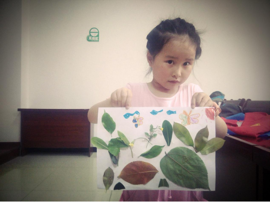我们的课程是“树叶成画”,当任务发给小朋友时她们有的面露难色觉得自己没有艺术细胞,有的拿着树叶束手无策没有好的点子……不知道该如何做起。这时,我来到了一个小女孩面前,她总喜欢坐在角落,怯怯的看着我们讲课,偶尔会小声的问一两个问题,虽然她毫不起眼,但我仍关注到她。我坐到了她旁边,她把树叶轻轻地递给了我,这是我们之间独有的谁都无法替代的默契。看到一张张零散互无联系的树叶被她拼凑成一幅完整且美丽的图画,她向我露出的笑脸时,每周的三口之行再次赋予了我新的意义与力量。因为,我愿意带给她们最好的。