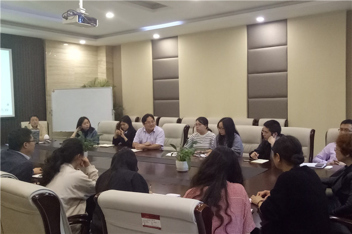 继而莫老师详细介绍了中德学院在竞技体育方面近年来取得的一系列成绩与不足。首先介绍了学院竞技体育的组织安排,以学工办主任为主要负责人,由竞技体育板块负责老师指导,学院学生会分管主席、部长负责具体实施。在近两年学校举办的“阳光杯”系列各项赛事、啦啦操大赛、田径运动会、游泳比赛等各类比赛中成绩斐然。并以2015届工商企业管理(中德)专业优秀毕业生朱彤为典型,向与会人员介绍了该生赴德国北黑森应用技术大学后与当地各国朋友组建球队,在竞技体育的欢乐中获得了精神的共鸣,在挥洒的汗水中获得了真挚的友谊。最后谈到学院竞技体育活动存在的不足时,莫老师说道:“运动员挖掘、培养力度不够是主要原因,经常是部分学生参与,没有调动起所有学生的积极性;其次宣传力度还需加强,影响力不够广,安全问题也同样不容忽视。