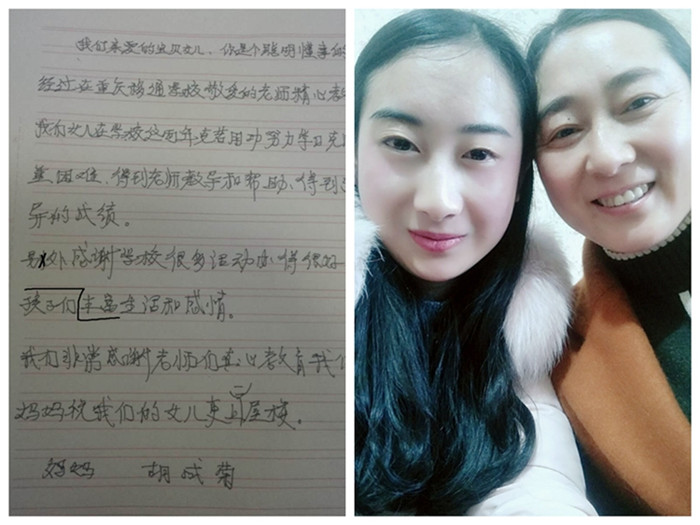 王朝建的母亲信中表示:“当我读完儿子的信以后,有很多的感触,同时儿子的成长也让我无比欣慰,感觉儿子大了,懂事了,慢慢的承担起了自己的责任。”