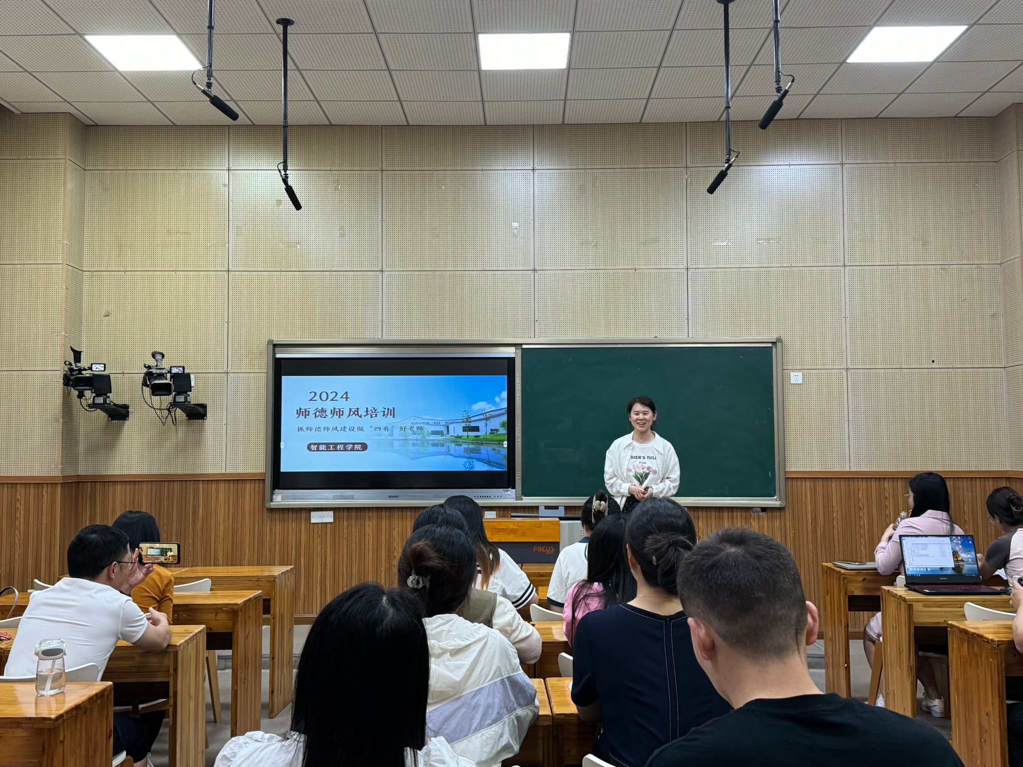为贯彻落实习近平总书记关于教育的重要论述,深入推进教育部关于高校教师师德师风建设工作的部署要求,加强对教职工教书育人的思想价值引领,智能工程学院于5月15日下午在爱莲阁开展师德师风专题培训活动。为充分发挥基层党组织的战斗堡垒作用,加强党风党纪引领师德师风建设,推动教师队伍素质全面提升。本次专题培训讲座由教师党支部书记王瑞芳主讲,学院全体专职教师参加。