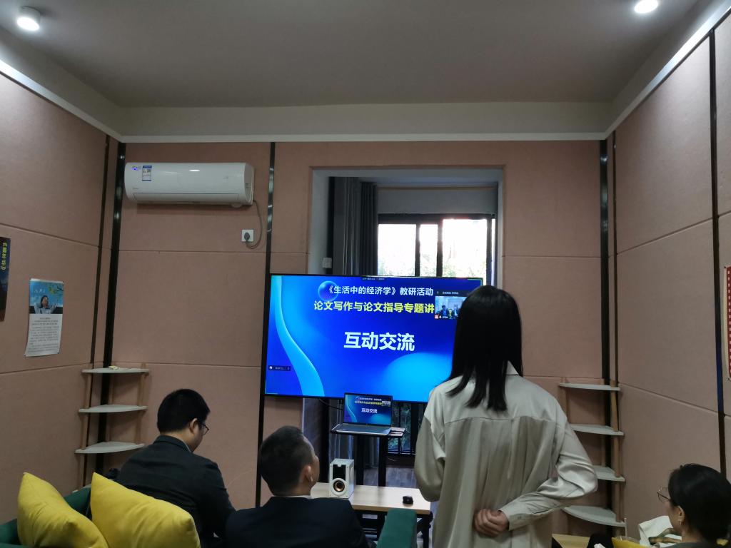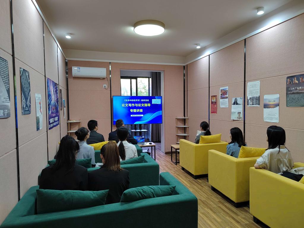 为提高教师的科研能力,促进课程团队教学专业水平的提升,2022年10月19日下午14:00,《生活中的经济学》教学团队在别都书院全V视角功能室开展了“经济学论文写作与指导专题讲座”,特邀集团专家进行了专题分享。本次讲座采用线上线下相结合的方式,由课程团队李邓金老师主持,《生活中的经济学》教学团队全体成员参加。