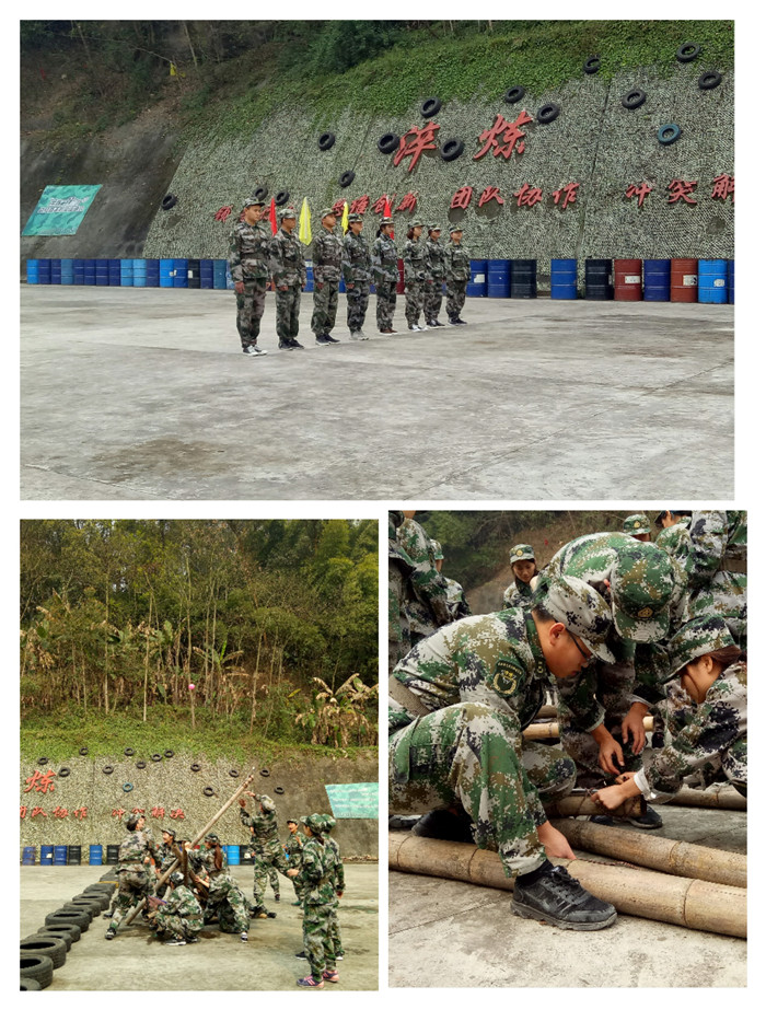 初春的早晨带着丝丝凉意,说不上刺骨,也说不上寒冷,而早操是一项必不可少的训练活动。天刚蒙蒙亮,学员们就跟着教练出去做早操,一个良好的身体素质,是做好任何工作的前提。做完基本训练后,学员们便接到一项神秘的任务,需要构筑一个简易炮台,并在规定时间内完成。一个团队必须有一个“领导者”,不然再多的成员也是一盘散沙,一吹即散。炮架由长短不一的竹子和绳子构成,装水的气球就是唯一的“炮弹”,只要将炮弹发射到对方基地就算得一分。虽然懂得基本原理,但实践操起来还是具有一定的难度,一三队的炮台架的比较高,次次都打到对方的基地里,二四队因为炮架太低,稳固不够等缘故,前几次都未能打到对方基地,在发现问题并努力解决后,终于发射出几个炮弹到对方的基地。