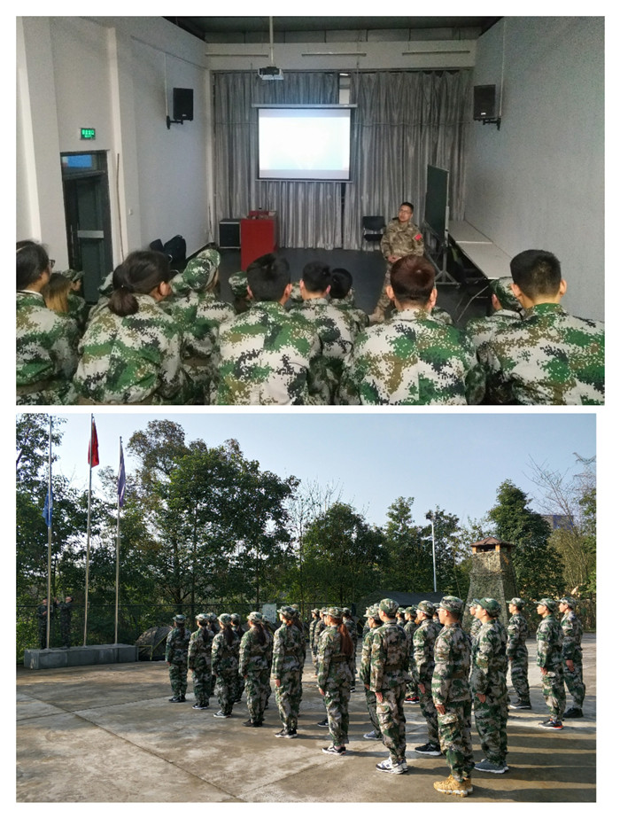 整装待发前,同学们有序的坐在教室里听教练讲解理论基础。准备就绪后,穿着统一的迷彩服来到基地开始正式的课程。在一个漆黑的夜晚,几支神秘却有着自己的队旗、队名和队歌,为了穿越重重阻碍而到达最终目的“队伍”,悄然诞生。野外求生最基本的一项就是要学会怎么搭帐篷,以抵御外来之侵,夜幕慢慢降临,小队依次构建好营地。一声哨响,全体队员都迅速集合,站成一个整齐的方队,双手紧贴着两侧的裤缝,眼睛注视着前方,一边听着教练的说明,一边进行着形体训练,等待着他们发编号,之后的两天里,他们将只有自己的代号。