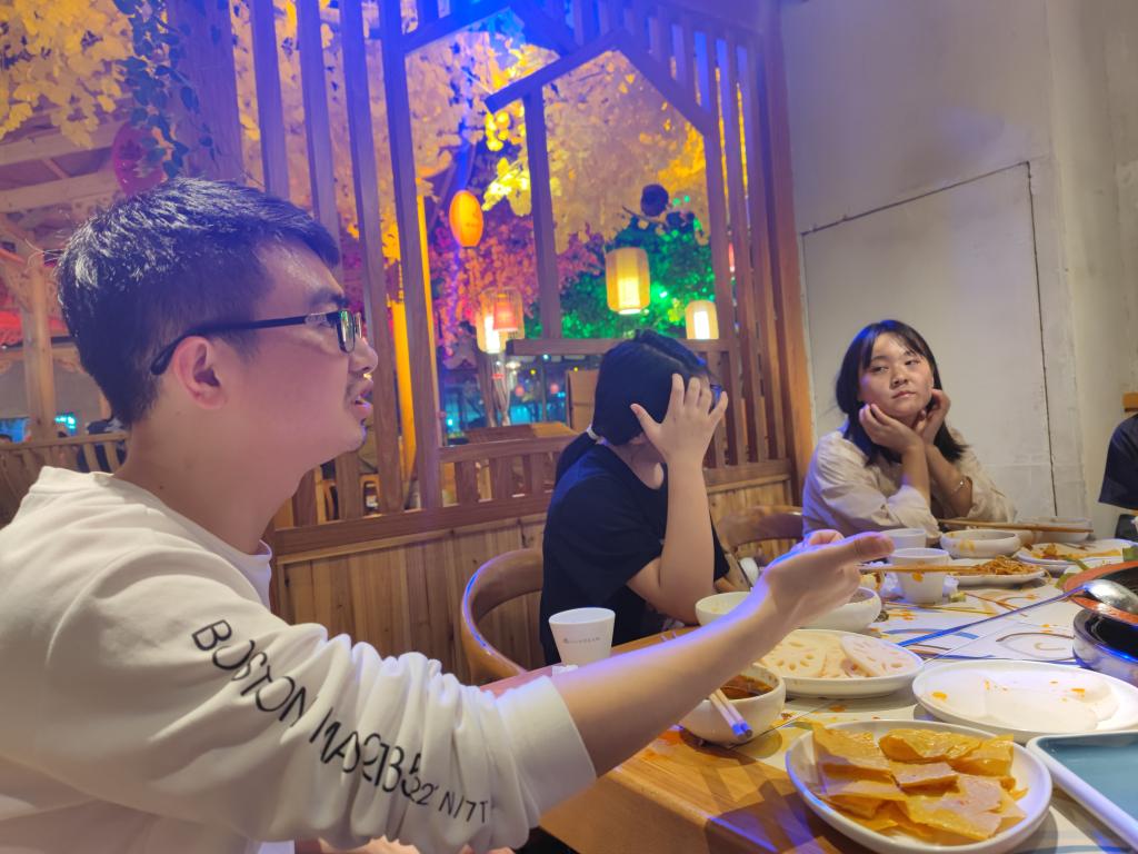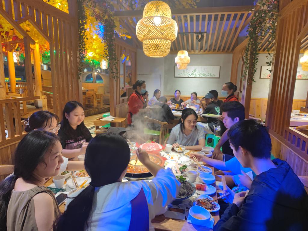 餐聚路上还发生了一件暖心的小插曲。李鸿同学私信老师,说道:“非常感谢税老师!但是可能费用不菲,我建议咱们去某某店聚餐吧。”税老师解释道:“我校对于咱们异科活动都有专项政策与资金支持,大家尽管放心啦”。在同学们对移通学院一片齐口赞叹之中,大家落座一堂开始了餐叙交流活动。