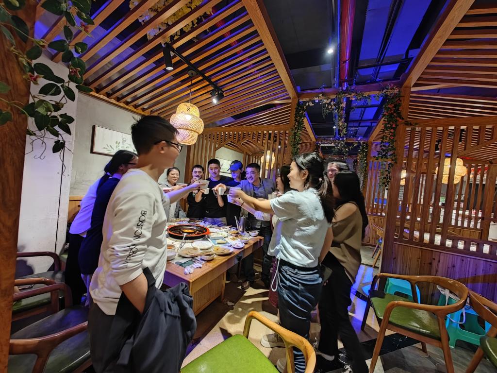 餐叙伊始,税青老师首先对各位同学的到来表示了热烈的欢迎。同时也了解到,目前已有18位同学正式提交了实习手续,其中的大部分目前已在实习岗位之中,因此也遗憾缺席了今天的活动。接下来的近三小时,同学们畅所欲言,尽叙同窗之谊,共谋未来之路。赵爽同学讲述了自己的创业历程。详细叙述了自己如何从代购公司的业务员做到了公司合伙人,并无私分享了很多“技术干货”:如何在某书平台做有效的业务推广;如何高效地做“社群裂变”;作为合伙人如何在保证课程学习之余做好运营管理工作;如何利用好学校创设的平台,在学校就创专家佘桂隆老师的指导下,力争进一步做大做强,等等。此外,一名同班同学在其鼓舞下,目前也在“撸起袖子跟着学一起干”。在场的同学听完以后,都表示深感钦佩备受启发。赵爽同学也表示,如果有需要以后也很乐意向更多的学弟学妹分享自己的经验。此后,陈治行同学就在永川区阿里客服部门的实习工作经历(专科期间)、薪资待遇、晋升路径、工作压力等等方面和同学们进行了分享交流,并鼓动大家“年轻人要舍得干”。徐盼、姚成文等同学就如何结合自己的专科专业(医药相关)与本科专业(市场营销)去锚定自己的就业方向进行了叙述。蒲莹等同学就如何平衡好考公与其它就业选择、如何做好时间与精力分配阐述了自己的看法。黄治森、胡建宇等3位来自于外省市的同学也展望了自己的未来,表示对自己来到重庆,尤其是选择移通深感庆幸。