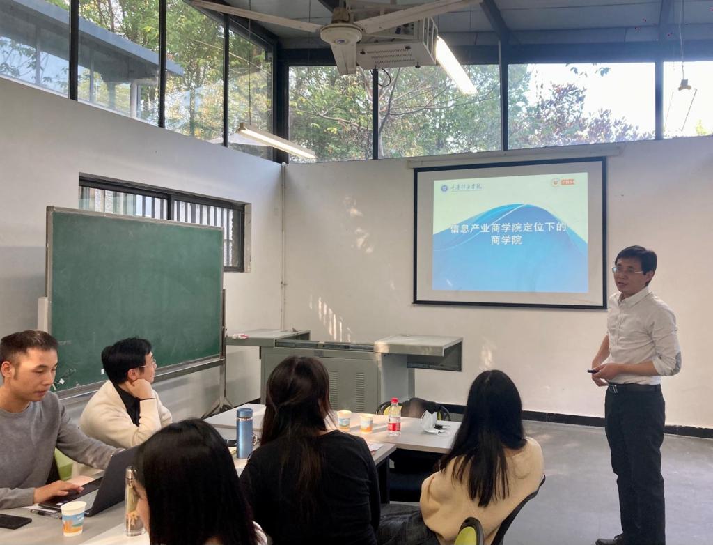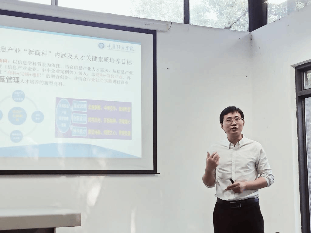 张院长进一步解释道,我们学校的“新商科”是以信息学科背景为依托,结合信息产业人才需求,从信息产业角度(信息产业企业、中小企业案例等)切入,即商科+信息产业,再通过“商科+完满+通识”的融合创新,并结合行业社会实践进行商业经营管理人才培养的新型商科。