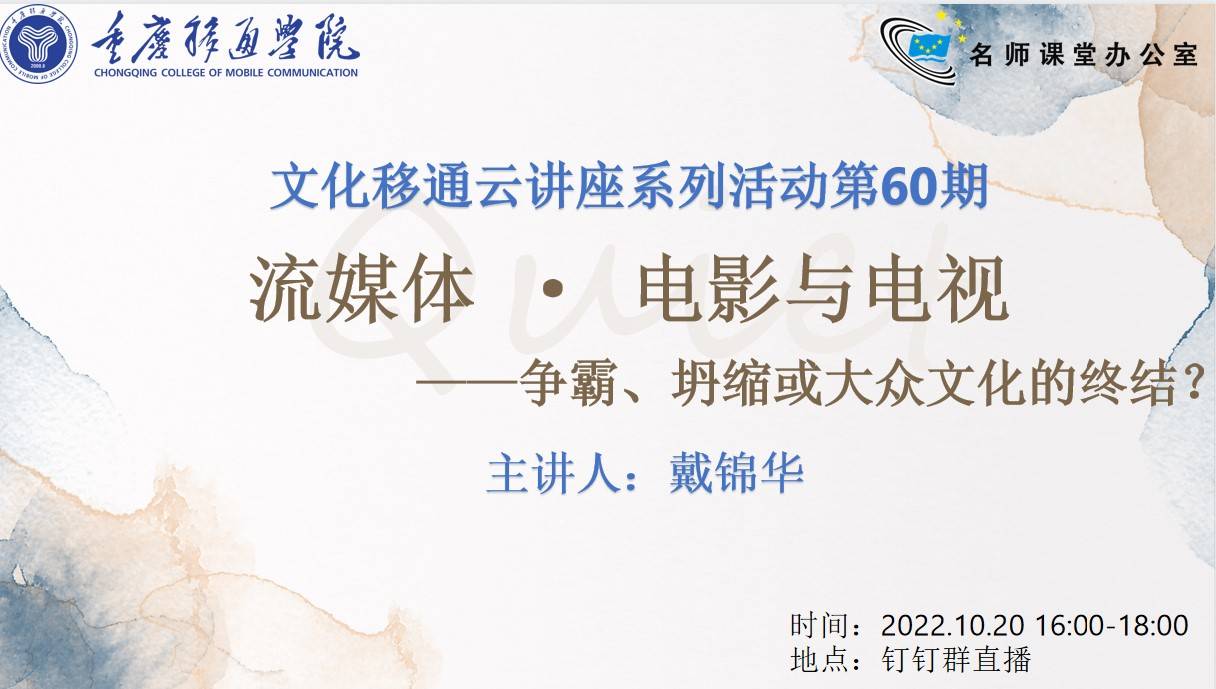 关于新媒体、电影以及电视剧,以视听时空的艺术样式来讲述故事,折射时代,达成与社会与人群形成某种互动的文化艺术现象。10月20日下午4点,文化移通线上研讨会,带来了北京大学戴锦华教授的精彩讲座,分享面对强势媒介传播之间的相互关系和更深层次的探索思考。