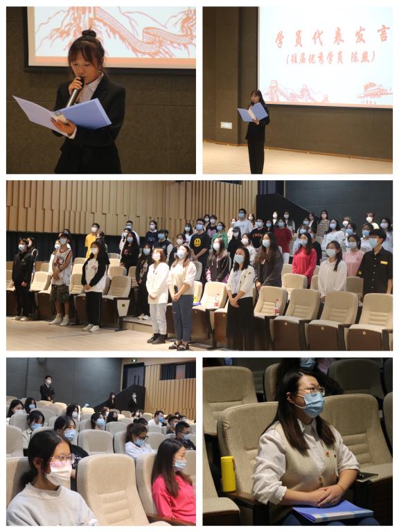 “用青春拥抱时代,用生命点燃未来。”大会伊始,全体学员及老师起立,庄严肃穆地奏唱团歌。曲毕,一幕幕往届青马工程精彩瞬间呈现眼前,无论是团结友爱的集体合照还是丰富多彩的实践活动,都令人敬佩而神往。往昔精彩瞬间充分彰显了青马学员应有的政治品格和精神风貌——积极传递正能量,与时代共进,与祖国共命运,与人民共发展。曾国藩先生曾说:“自立立人,自达达人,莫问收获,但问耕耘。”陈燕很好地诠释了这句话。作为往届优秀学员带着自己在青马工程一路的感悟与收获前来表达自己的祝贺与期待,也对新学员们未来的学习过程提出一定的建议。期待青马的新学员们成长成陈燕发言中的“有理想、善学习、讲道德、要自立、勇奋斗”的青年马克思主义者。