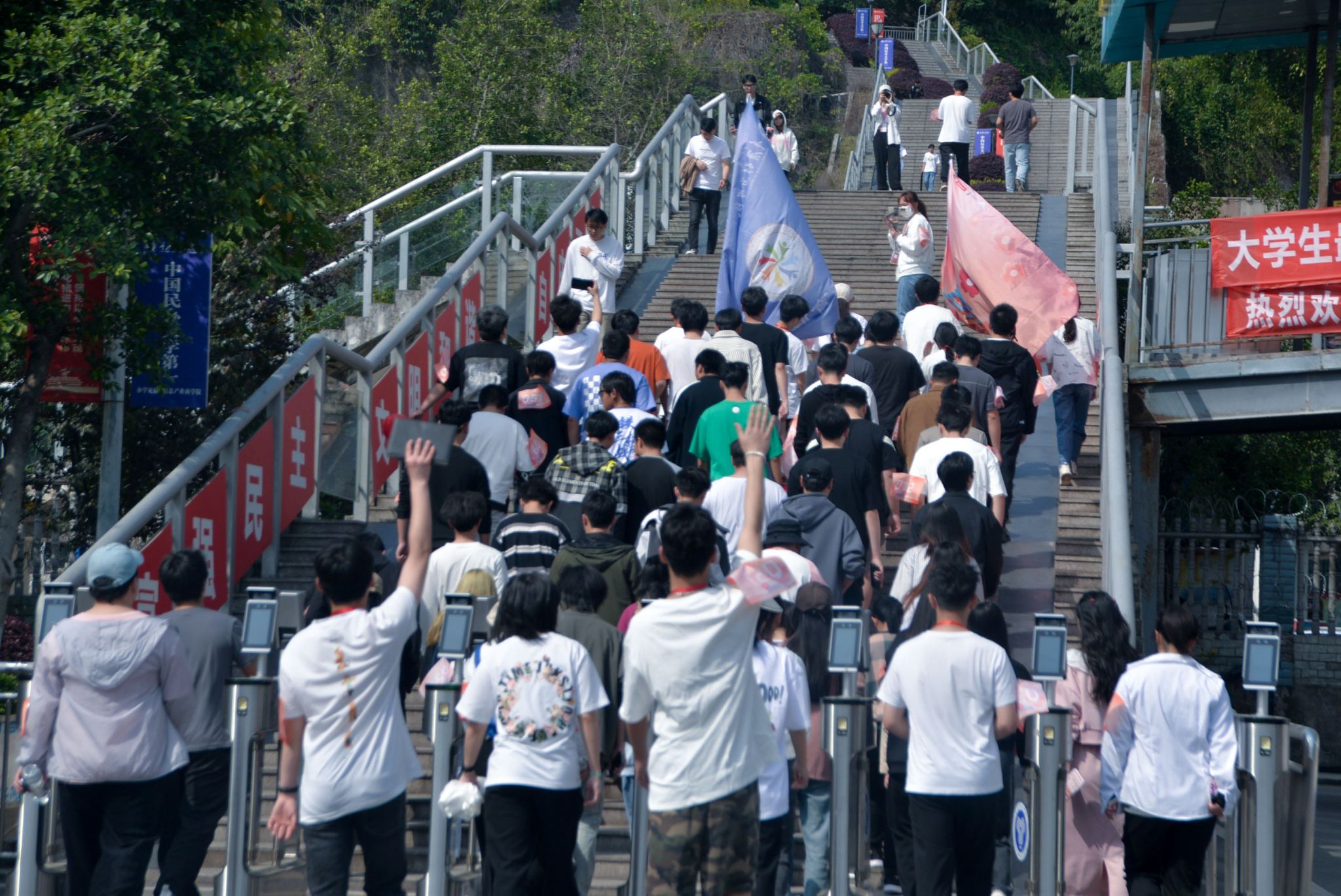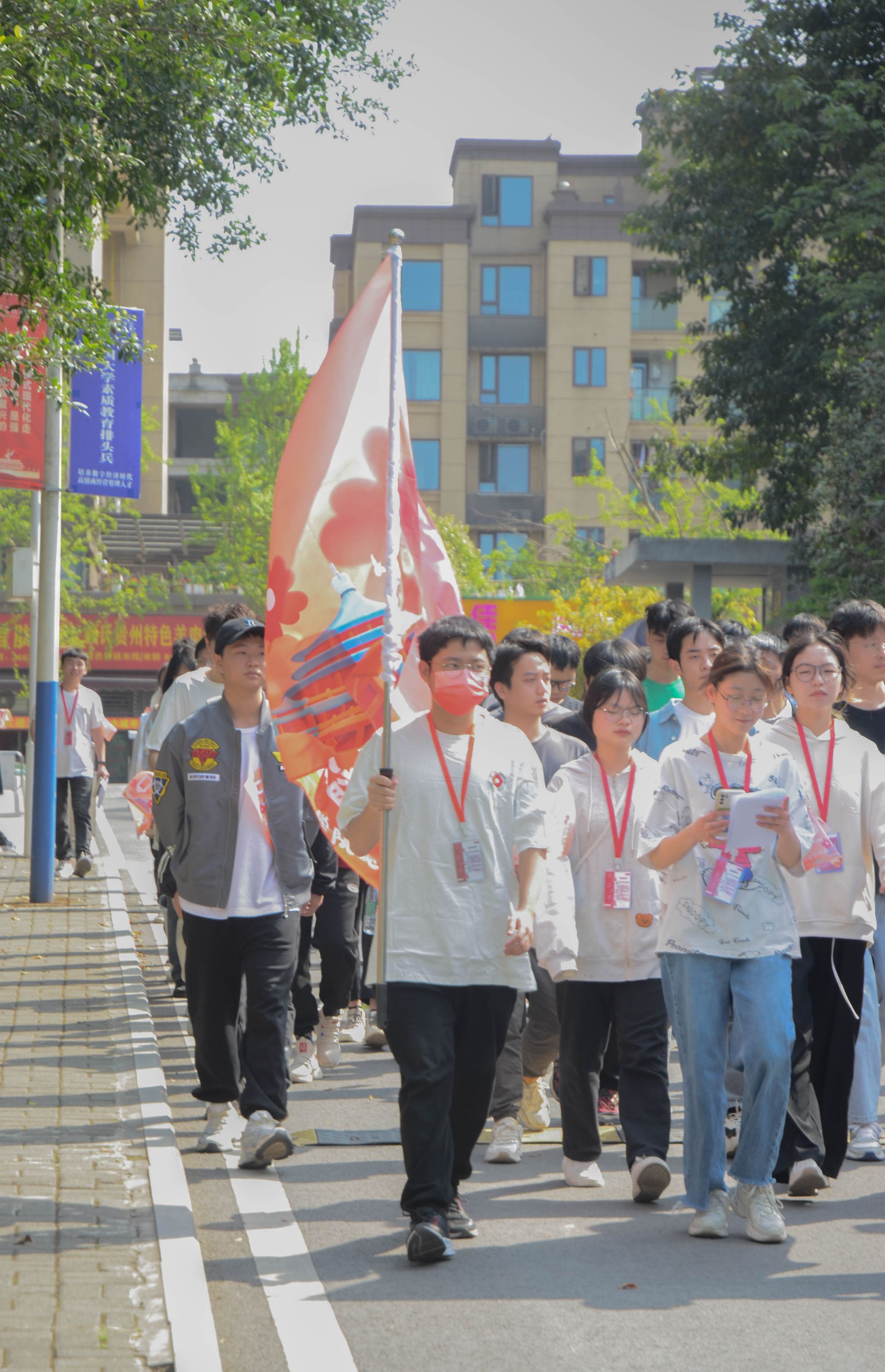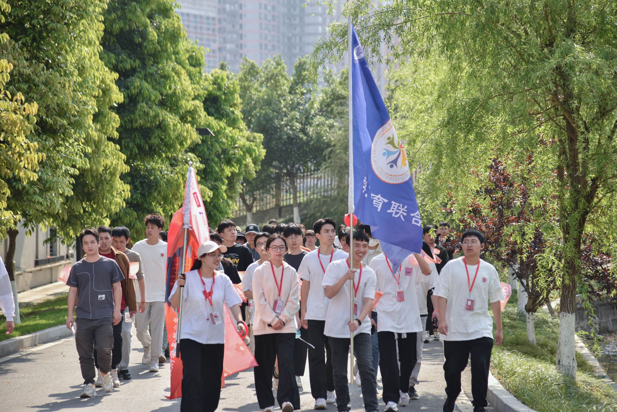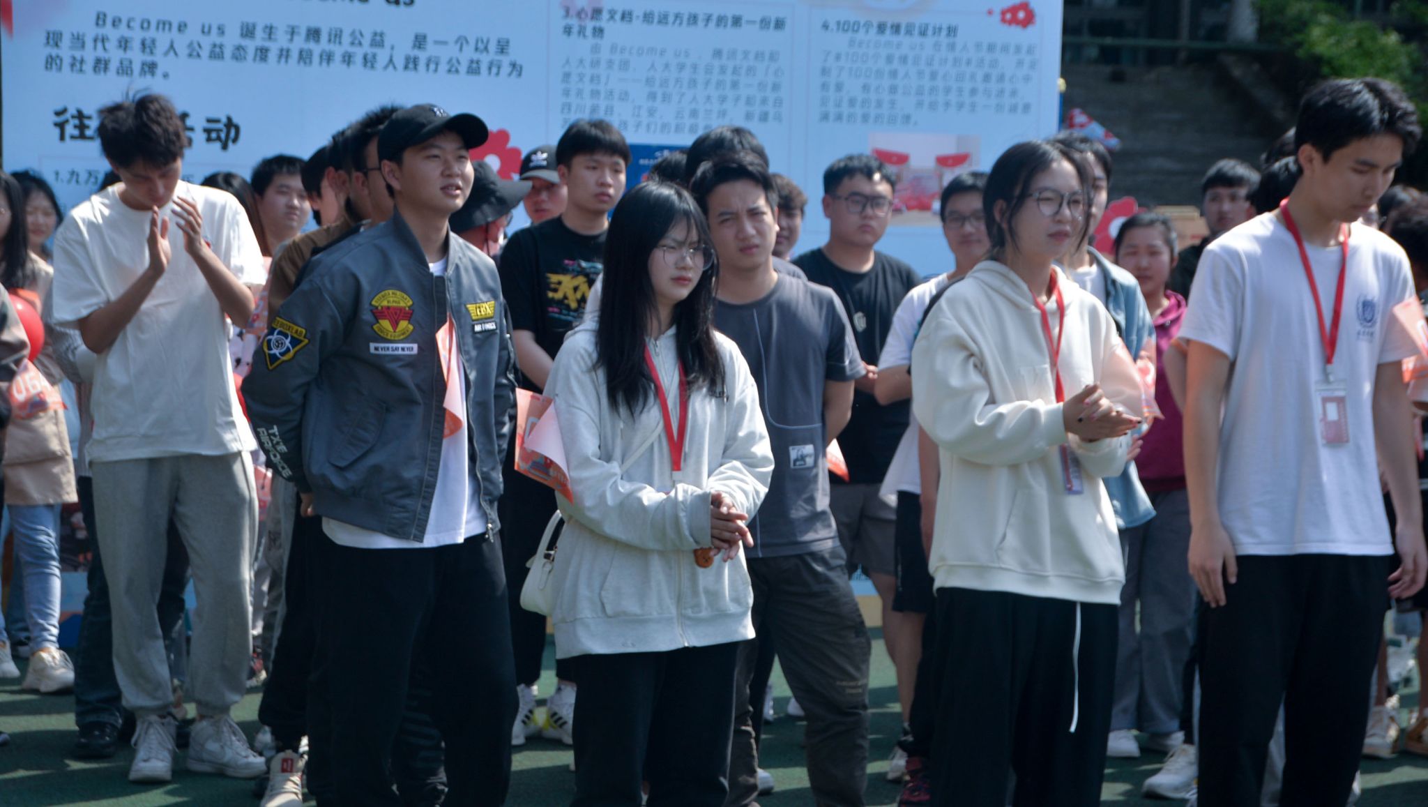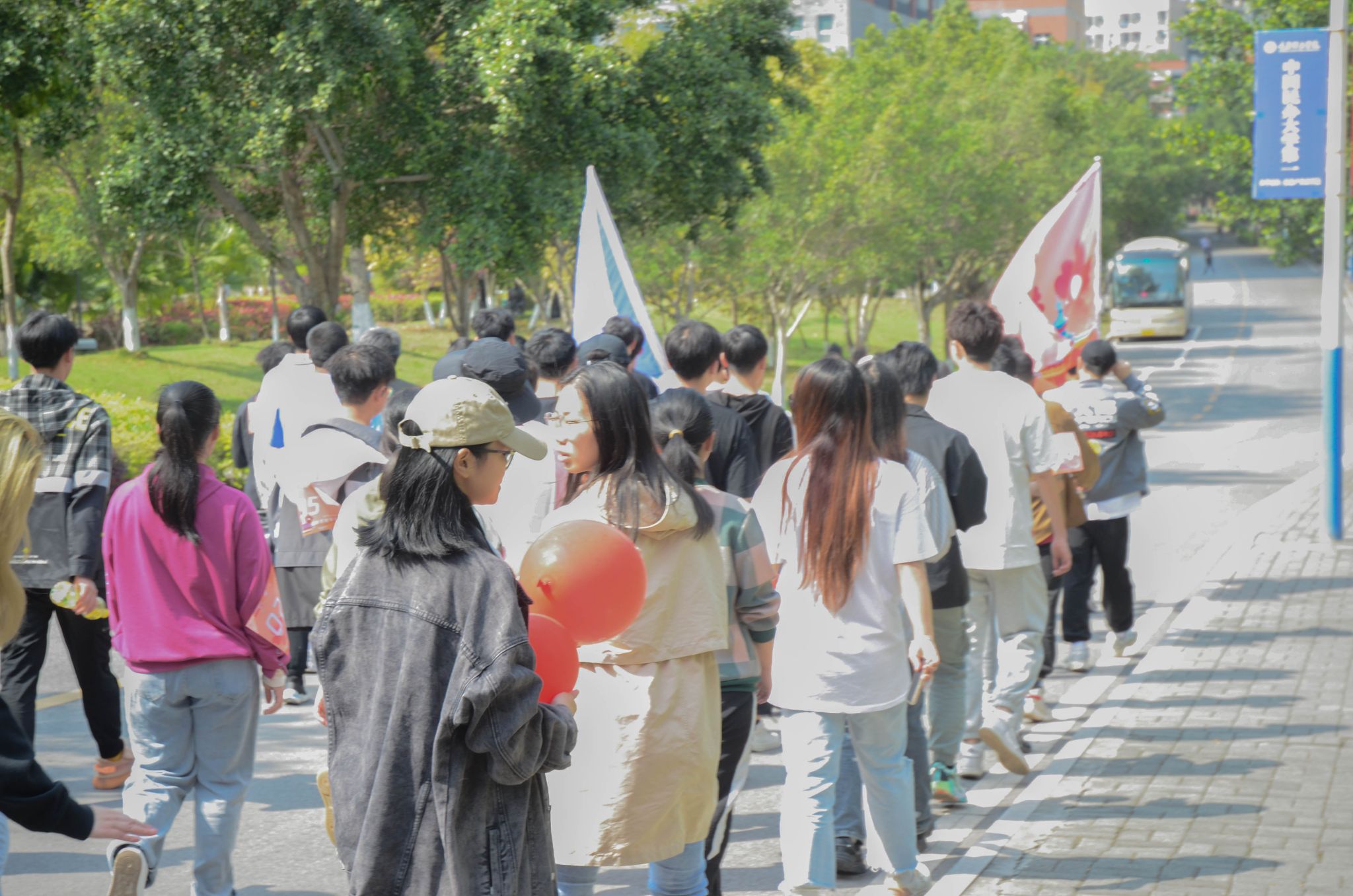 2023年4月9日。重庆移通学院学生体育联合会全体成员与各学院的志愿学生于B区足球场开展“校趣跑-4公里徒步计划”,为“腾讯公益-校趣跑”助力。