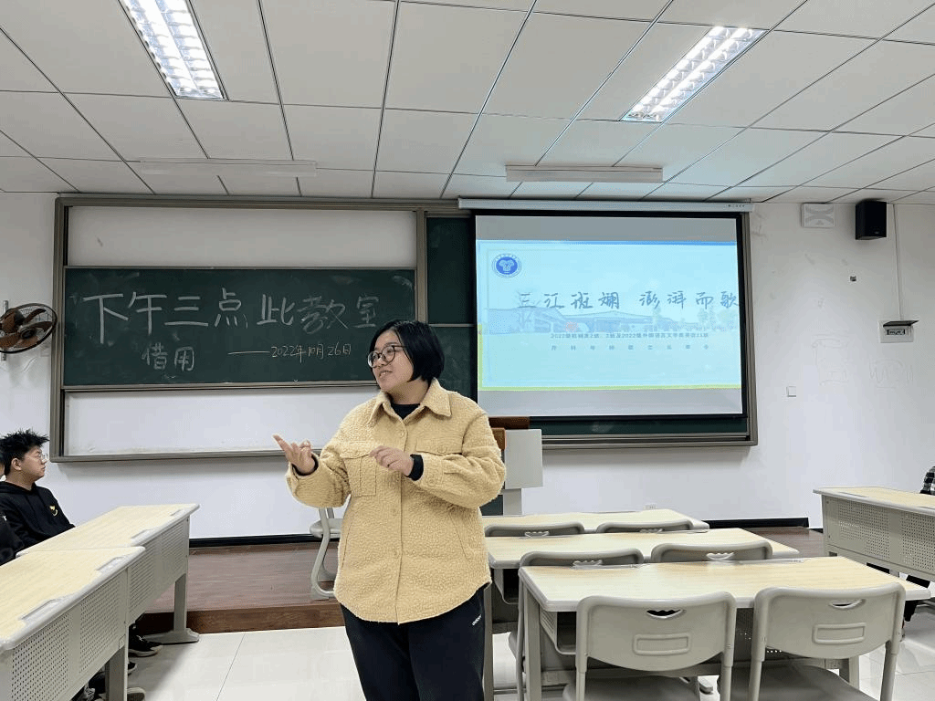 学生的处吴雷方成老师和外国语学院的纪治阳老师分别出任了外国语学院2022级外国语言文学类英语11班和智能工程学院2022级机械类2班、3班的异科导师。在这里,异科导师们与学生第一次相遇,吴雷方成老师从自己大学到工作的经历为入手,让学生们能够更快认识自己的导师,纪治阳老师则打趣的从自己的体型出发,帮助学生们更快识别自己的导师。第一次自我介绍并没有预想中的拘谨,异科导师们也慢慢和学生熟络了起来。