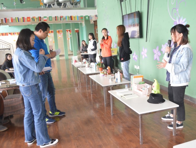 比赛分为两场,分别有4-5位同学现场限时根据现场现有的物品进行创作。现场工作人员为同学们准备了毛绒玩具、笔、书等等大家日常生活中能够用到的东西。每位同学在规定的时间完成后还要对自己的作品进行简单的阐述,表面自己作品的寓意。