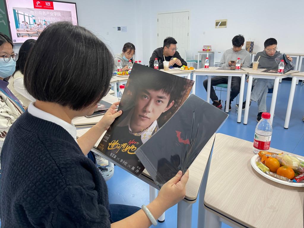 电影商务产业学院杨磊副院长送上了由万画影城为精英班同学们准备的精美伴手礼——蝙蝠侠周边文件夹及易烊千玺签名海报,让同学们感受到了满满的亲切感。